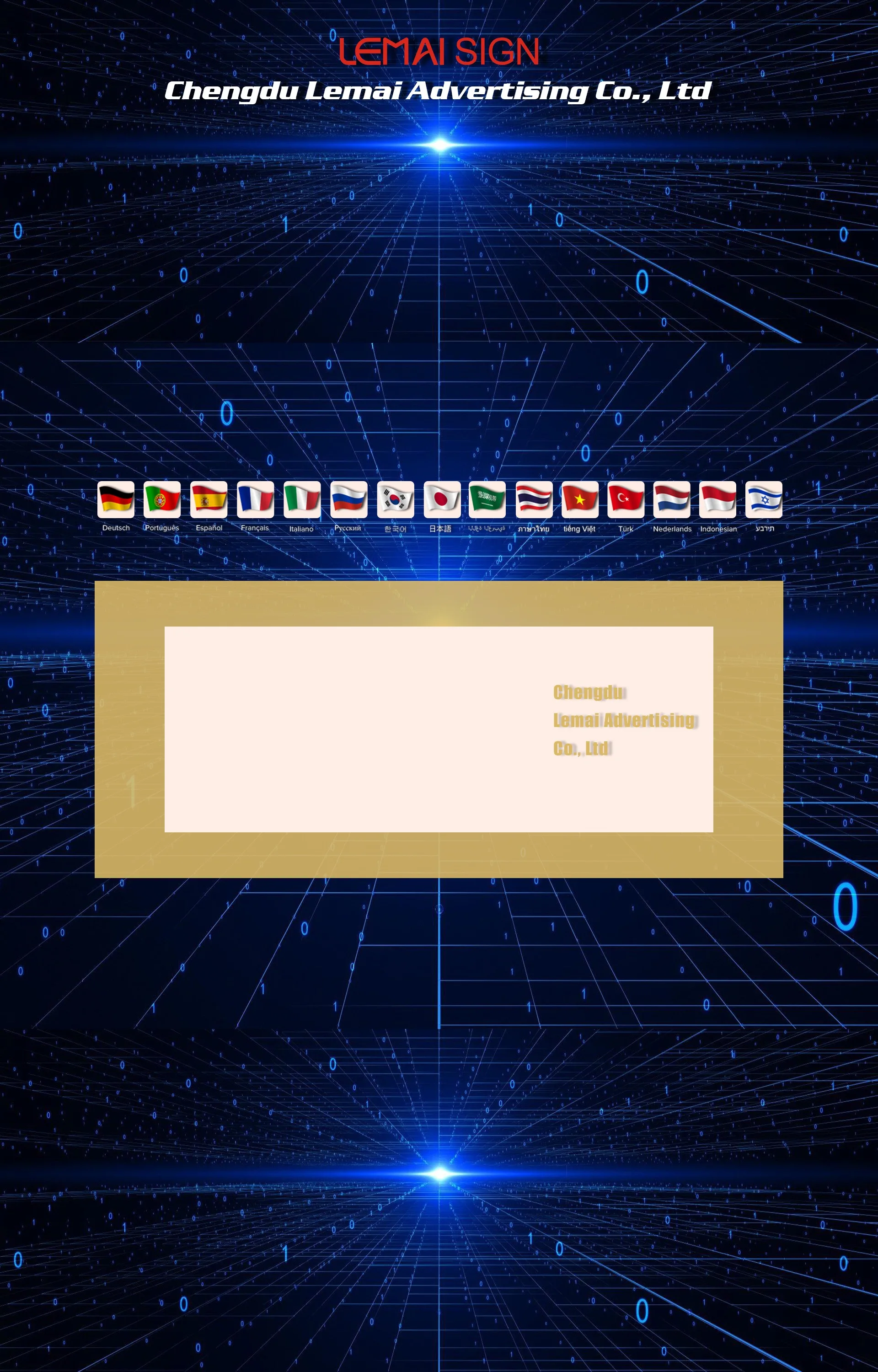 Chengdu Lemai Advertising Co., Ltd. is an enterprise dedicated to the business trade and technology development of led products, decoration or advertising light boxes, etc. The company has a research and development team engaged in led lighting decoration products all the year round, with strong technical force and many experienced technicians and professional product development designers. The company has advanced product production equipment and testing instruments, excellent marketing team and domestic regional channel partners, and has a sound management plan for product market development and product after-sales service. Sales network and product sales agencies are all over the country. Strong and professional research and development team and advanced and perfect sales service concept make our company's products have higher popularity and market share at home and abroad.